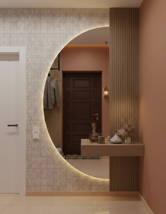 مرآة نصف القمر بتصميم عصري وأنيق تضيف لمسة فنية فريدة إلى أي مساحة. بفضل شكلها الهندسي المميز، توفر انعكاساً واضحاً وتعكس الضوء بطريقة تزيد من إضاءة الغرفة بشكل طبيعي. مثالية للحمامات والممرات وغرف النوم، تجمع بين الوظيفة والجمالية. إطارها المتين يضمن متانة طويلة الأمد، بينما تصميمها البسيط يتناسب مع مختلف أنماط الديكور الحديثة والكلاسيكية.